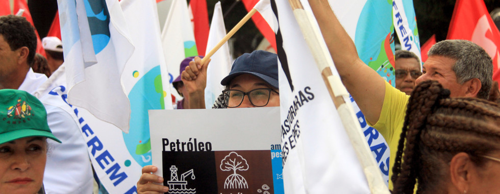 As principais bandeiras dos povos do mar e das águas eram pelo reconhecimento dos territórios pesqueiros, por meio do PL 131/2020, a Campanha Mar de Luta que denuncia os impactos do vazamento de petróleo em 2019 na costa brasileira, pela aprovação da nova Lei da Pesca (PL 4789/2024), contra a especulação imobiliária e a exploração de petróleo na Foz do Amazonas. Com criatividade e contundência, o cortejo incluiu um “funeral dos combustíveis fósseis”, com caixões simbólicos, bonecos satíricos e performances que denunciaram os impactos do colapso climático e do modelo energético vigente sobre os territórios tradicionais.